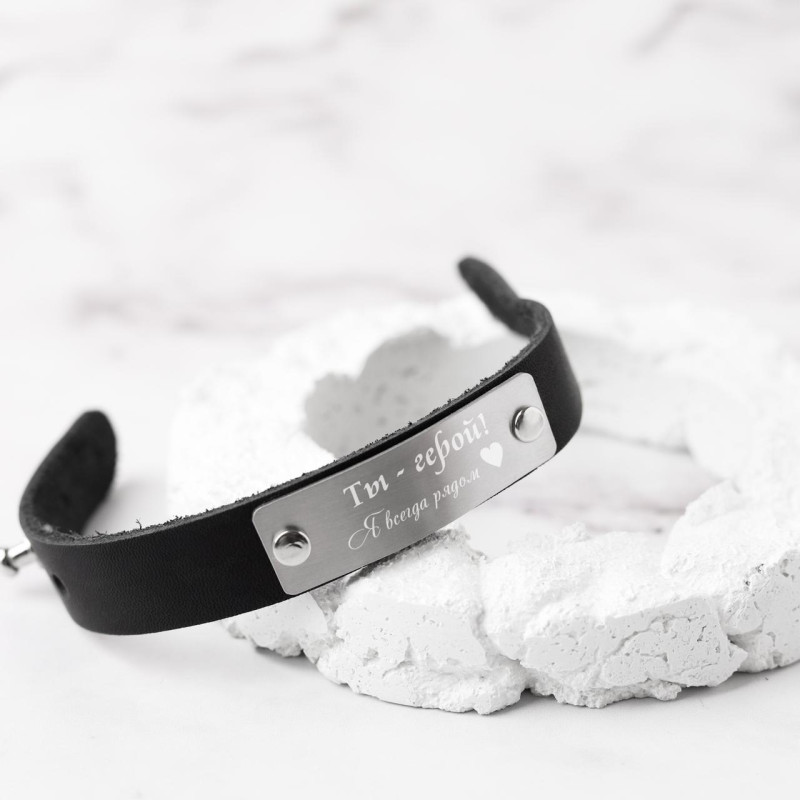 Браслет из натуральной кожи с металлической пластиной из ювелирной стали