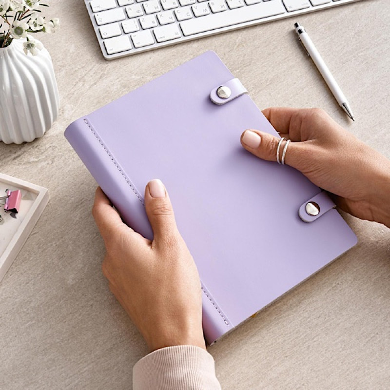 Дизайнерский кожаный ежедневник с гравировкой, цвет лиловый