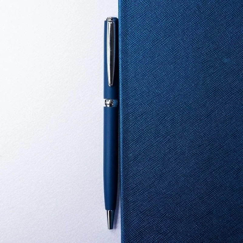 Ежедневник с именной гравировкой и серебряным срезом «Лари», цвет синий