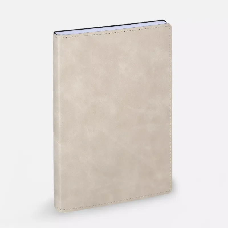 Ежедневник в клетку, с гибкой обложкой, выполнен из материала Nubuck Touch, светло-коричневый WW, дополнен ляссе бежевого цвета.