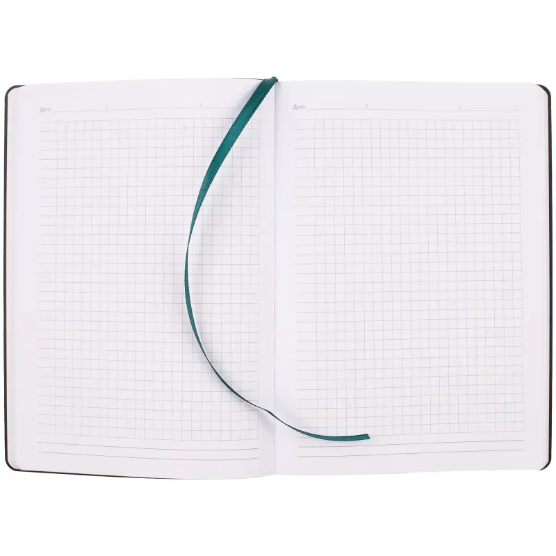 Ежедневник с гибкой обложкой, выполнен из материала Nubuck Touch, тёмно-зелёный VV, дополнен ляссе в цвет обложки.