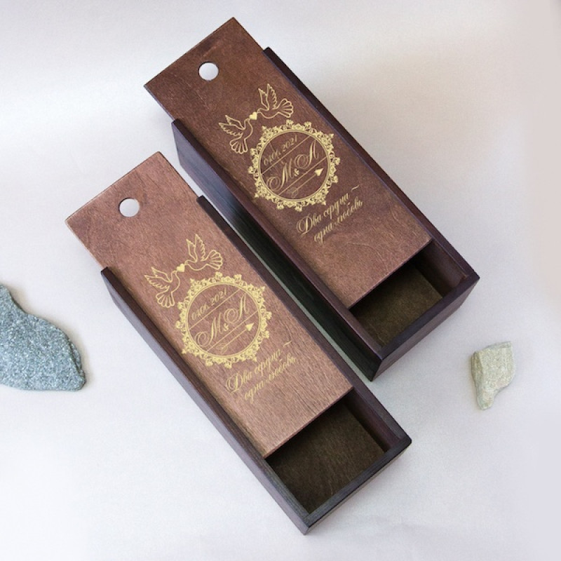 Данный футляр будет уместен для дегустации, романтического вечера или похода в гости на новоселье. А также прекрасный подарок на свадьбу. Подарок будет поистине неповторимым и незабываемым, если на дереве сделать персональную гравировку. Это может быть имя, поздравление, цитата, рисунок или какой-то другой дизайн. Наши мастера помогут подобрать шрифт и стиль гравировки. Предоставят макет на утверждение. Ваши друзья и близкие оценят ваш тонкий вкус и оригинальный подход к выбору подарка.