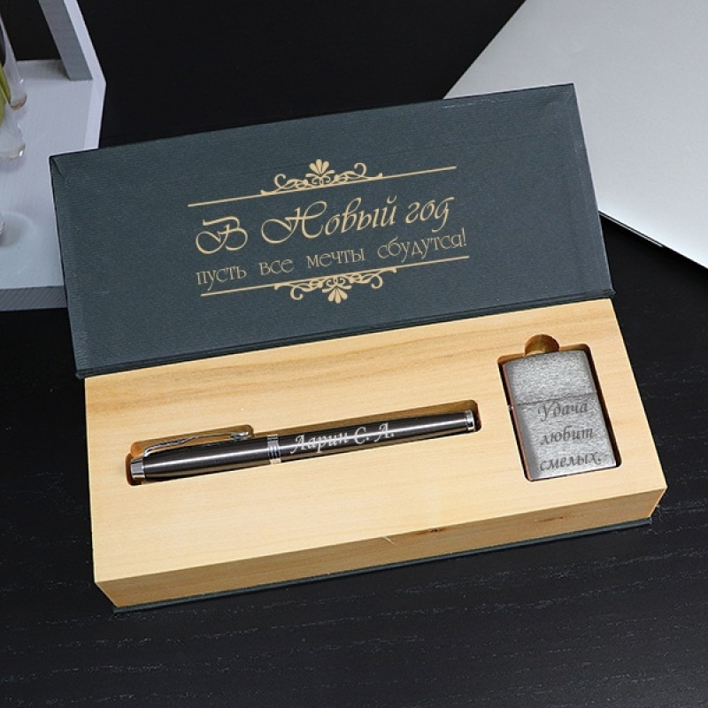 Подарочный набор зажигалка Zippo и ручка Parker "Real Steel" с гравировкой