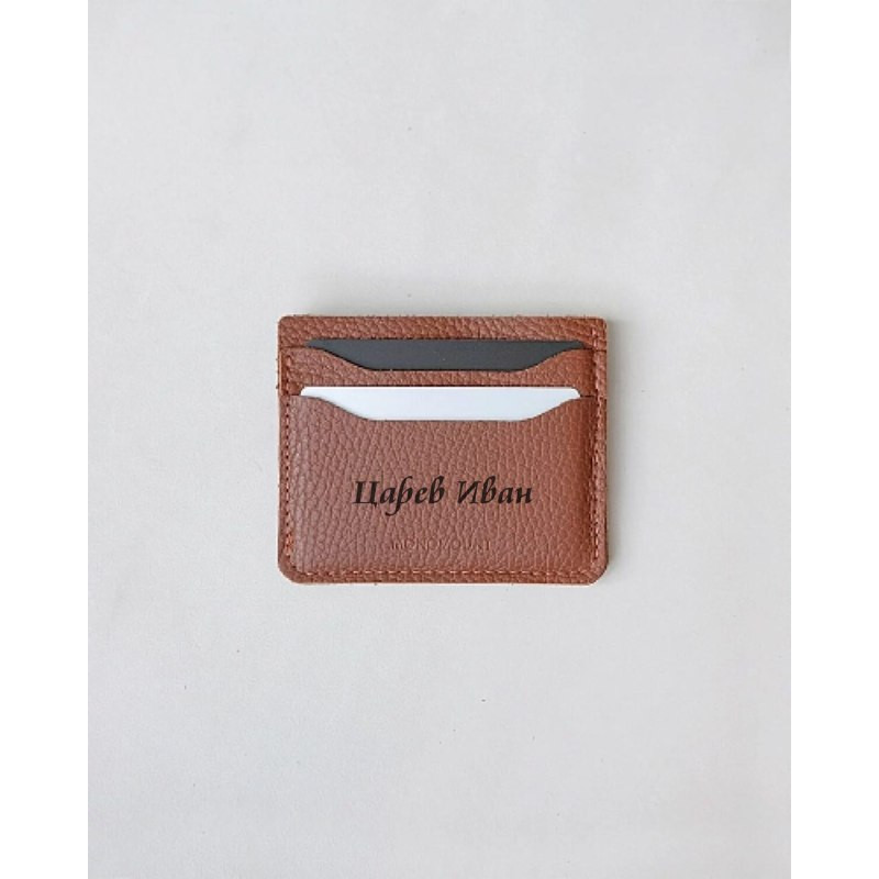 Картхолдер кожаный с гравировкой "Флэт", цвет рыжий