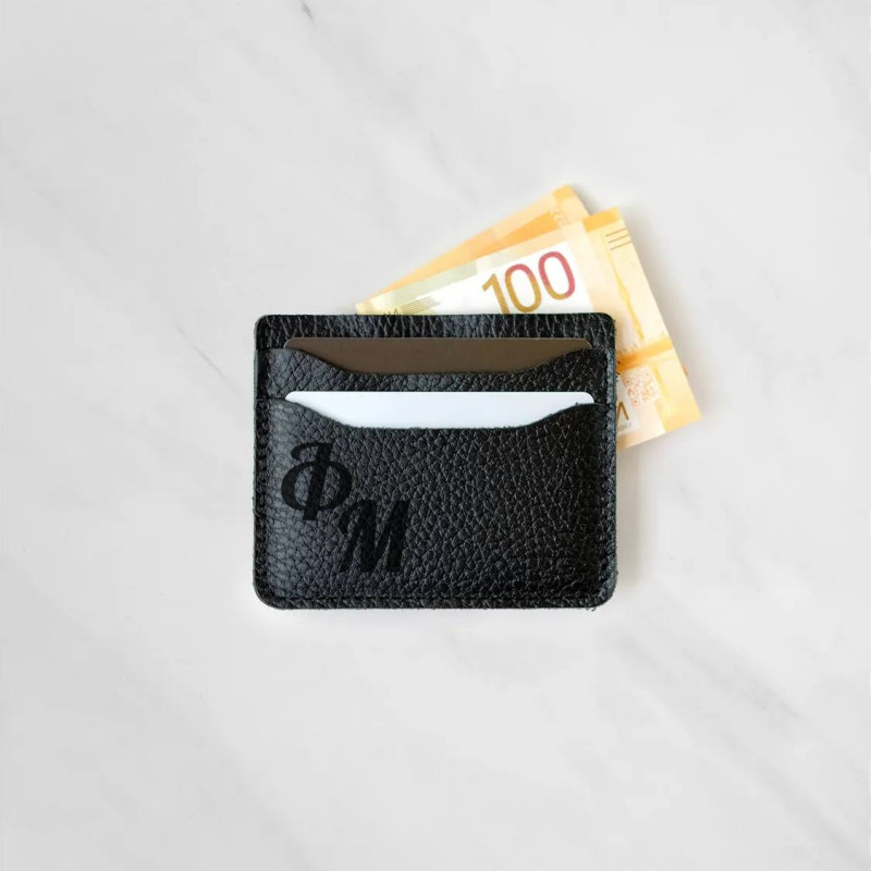 Картхолдер кожаный с гравировкой "Флэт", цвет черный