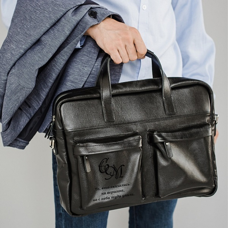 Кожаная сумка с персональной гравировкой "Кенвуд", цвет чёрный