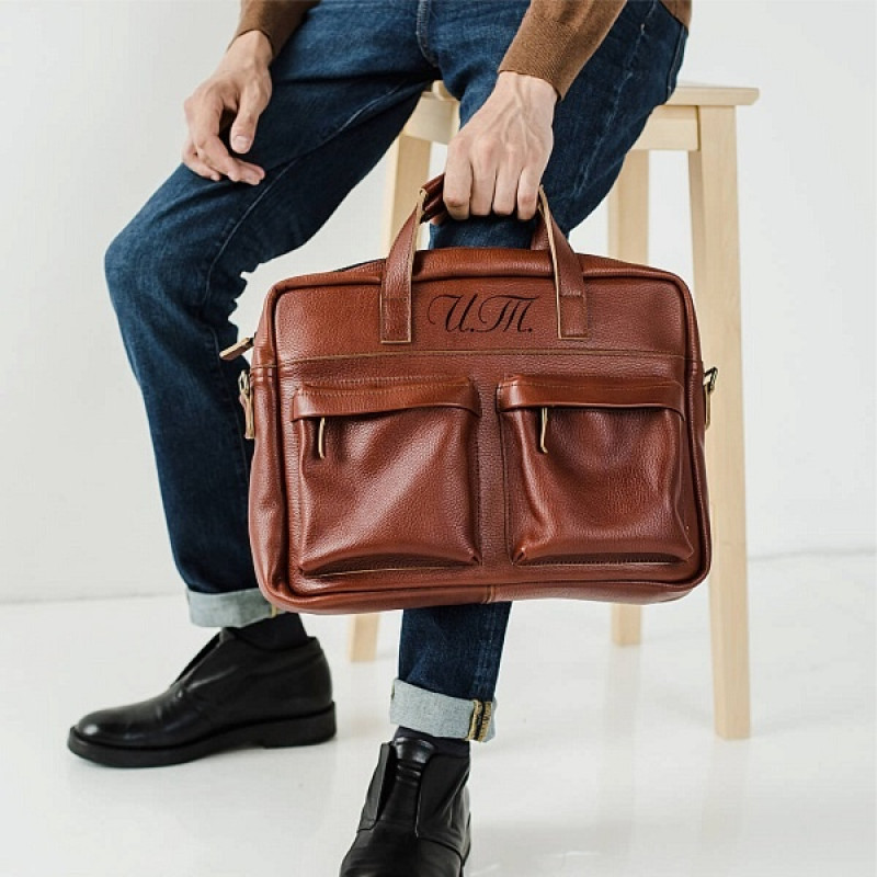 Кожаная сумка с персональной гравировкой "Кенвуд", цвет коньячный