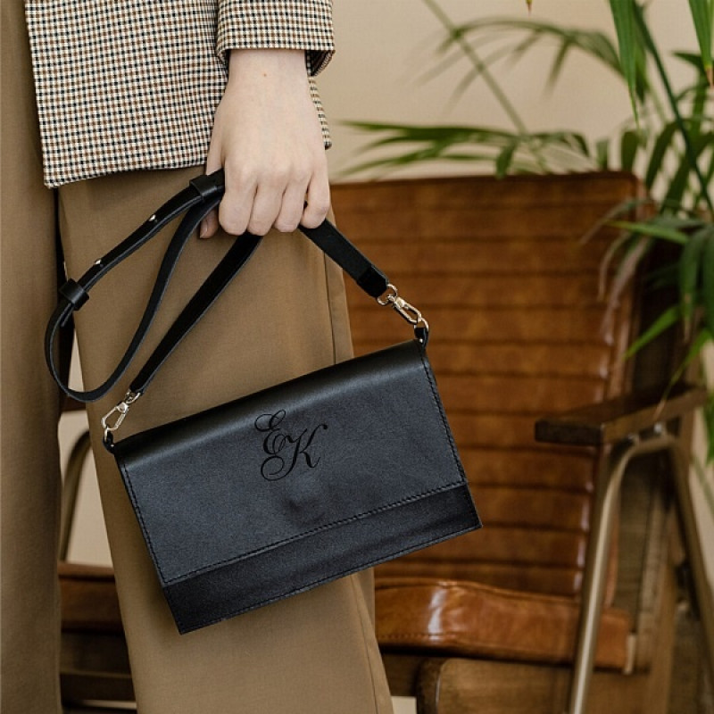 Кожаная сумка с персональной гравировкой "Пошет", цвет черный