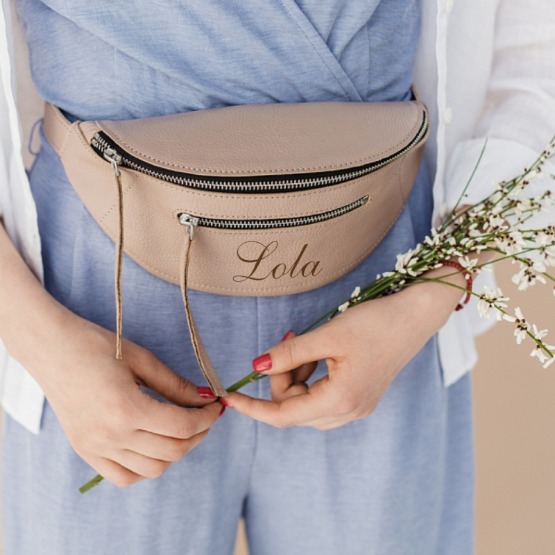 Кожаная сумка с персональной гравировкой "Сомерсет", цвет нежный розовый