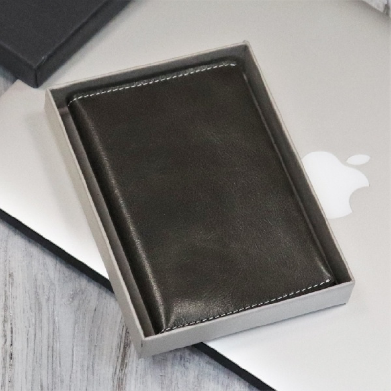 Очень стильный подарок – обложка для паспорта из натуральной итальянской мягкой кожи цвета мокрого асфальта. В сочетании с бежевой строчкой обложка выглядит ярко и стильно. Внутри обложки есть отделение для карточек. Обложка подходит как для российского паспорта, так и для заграничного. На внешней стороне обложки мы сделаем любую гравировку по вашему запросу. Это может быть нанесение логотипа, сложного дизайна, мотивирующей цитаты или инициалов монограммой. Гравировку лазерная и на несколько тонов темнее основного цвета кожи. Обложка для паспорта упакована в подарочную коробку . Обложка для паспорта с гравировкой – лучший подарок путешественнику.