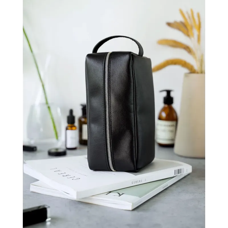 Кожаный несессер с гравировкой, цвет черный