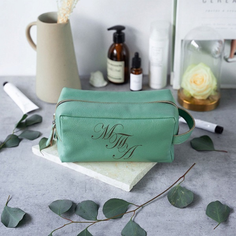 Кожаный несессер с гравировкой, цвет тиффани