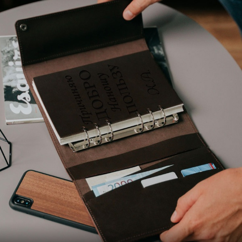 Кожаный органайзер на кольцах А5 "Memo Umbra" с гравировкой