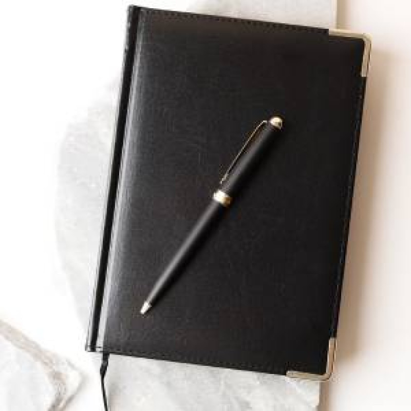 Кожаный ежедневник с гравировкой "Триумф", черный, с золотым срезом