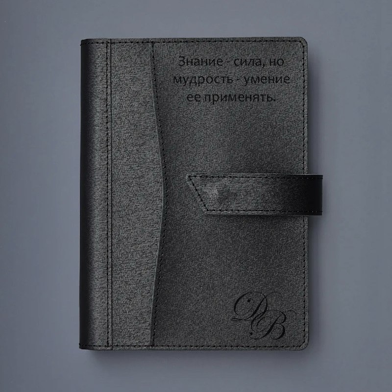 Ежедневник из натуральной кожи с кармашком спереди. Хлястик на магнитной кнопке не даёт ежедневнику случайно раскрыться в сумке и защищает срез и уголки страниц от загибов и сминания.