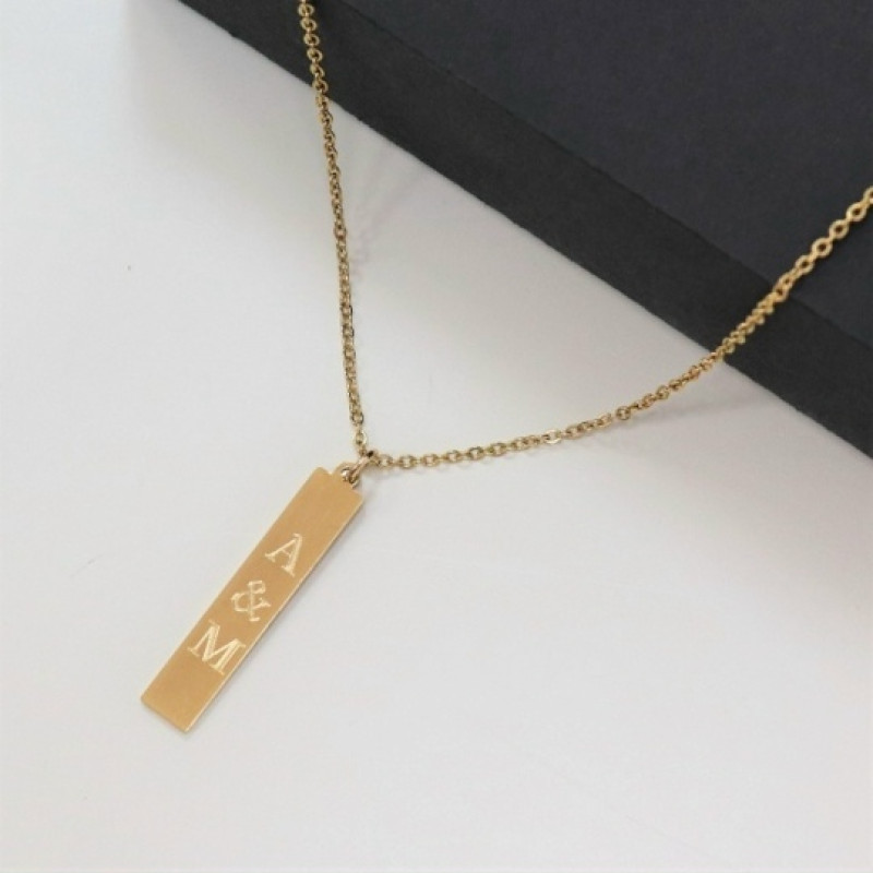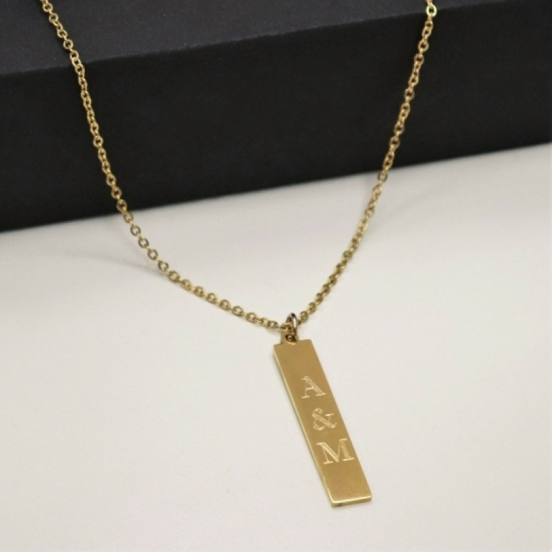 Характеристики > Материал подвески: ювелирная сталь > Материал цепочки: ювелирная сталь > Размер подвески: 4х0,7 см > Длина цепочки: 59-64 см > Цвет: золото