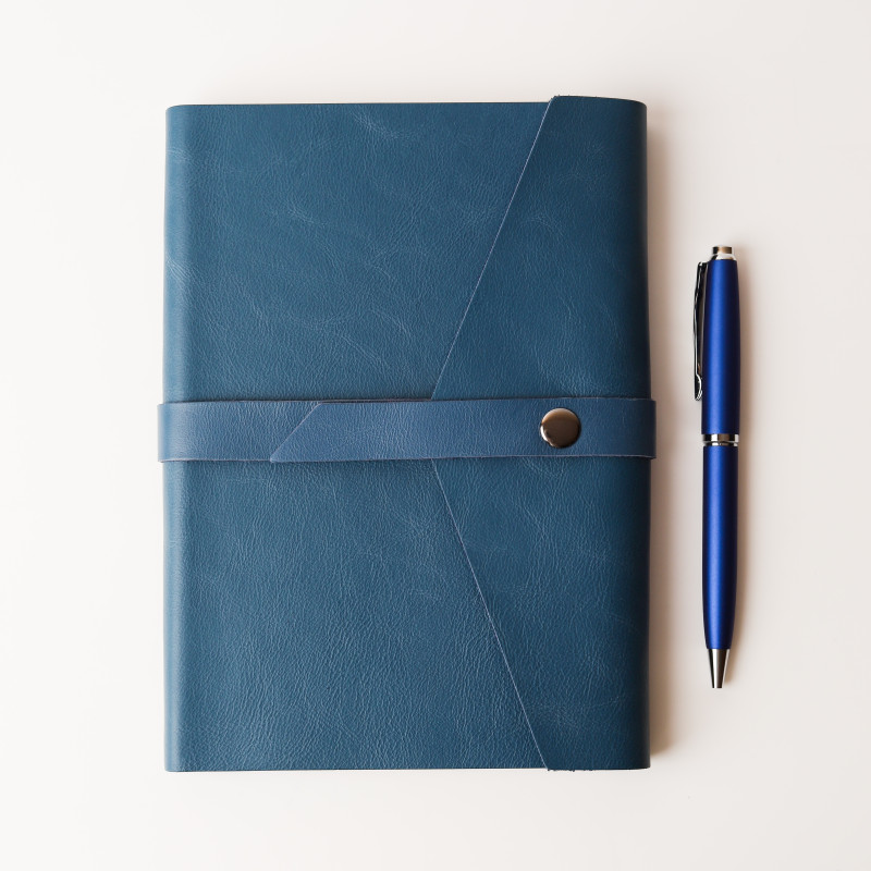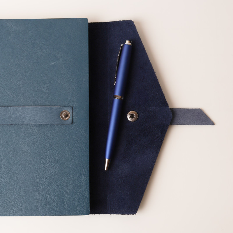 Кожа для этой обложки обработана и защищена от грязи с внешней стороны. Лаконичный дизайн с застежкой на кнопку и декоративной горизонтальной полоской подойдет деловому и творческому человеку на любых форматах встреч.
