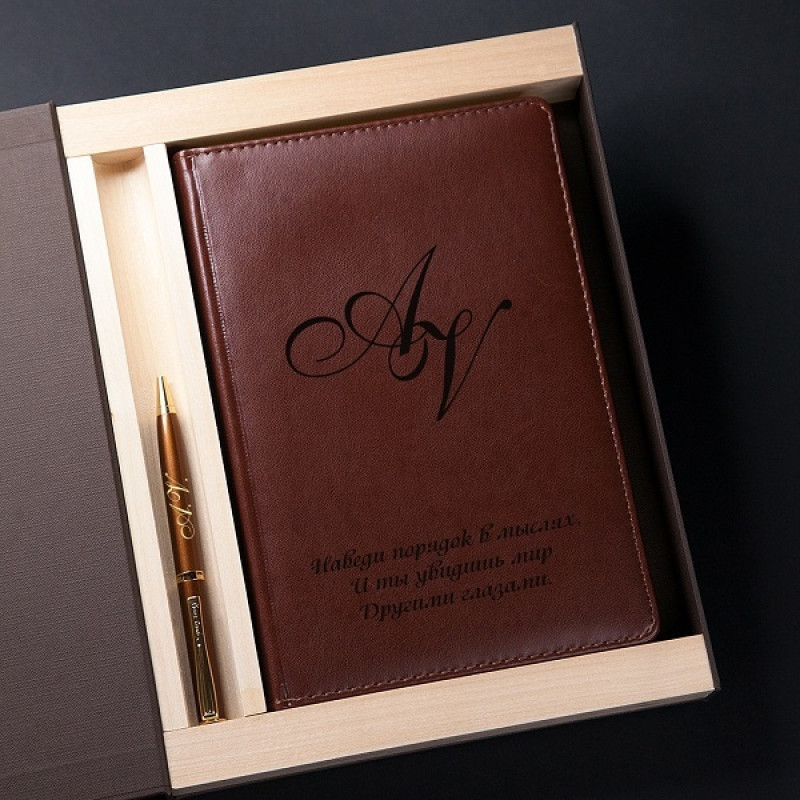 Набор ежедневник и ручка в подарочной коробке с гравировкой "Galant", цвет коричневый