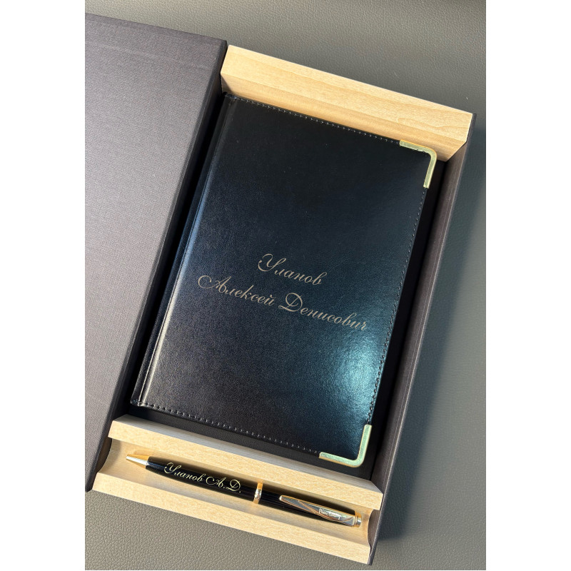 Кожаный ежедневник с золотым срезом и ручка Pierre Cardin в подарочной коробке с гравировкой "Прадо"