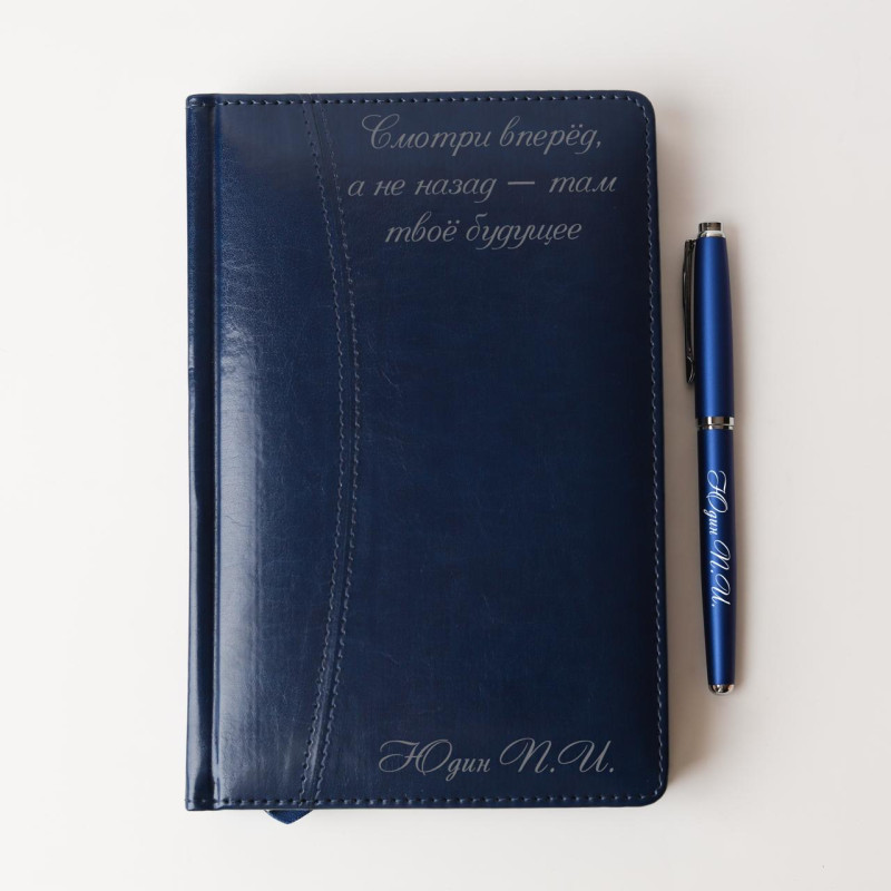 Набор ручка и ежедневник с гравировкой "Клипс", цвет синий