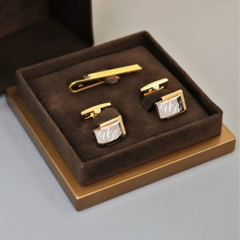 Набор запонки и зажим для галстука "Белфаст" с гравировкой
