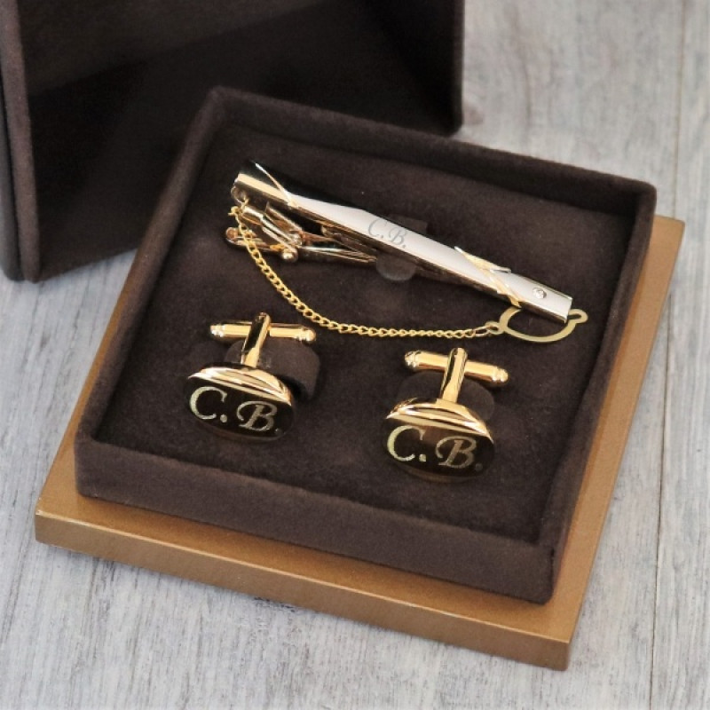 Набор запонки и зажим для галстука "Мадрид" с гравировкой