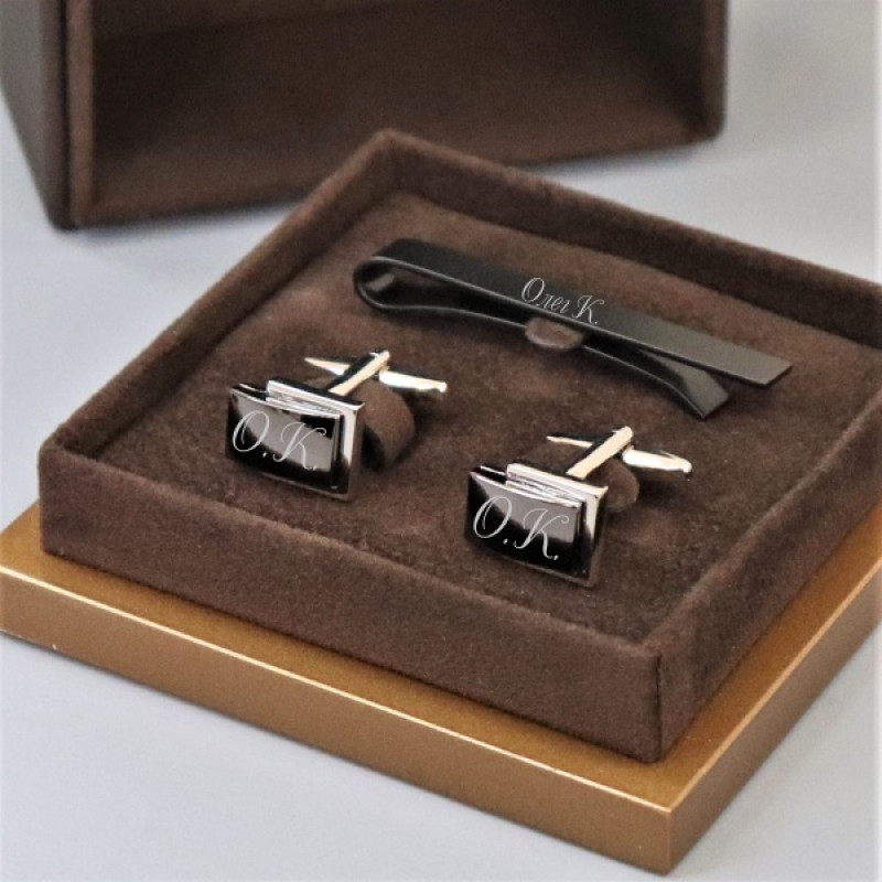Набор запонки и зажим для галстука "Мельбурн" с гравировкой