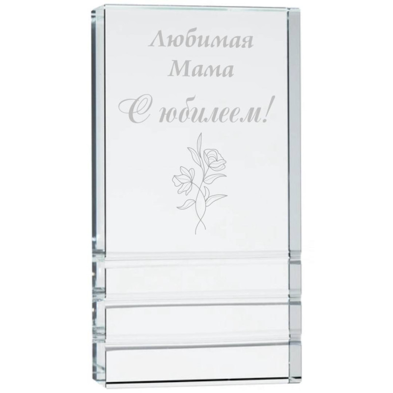Стела изготовлена из стекла К9, в основе которого лежит оптическое боросиликатное стекло. Эту марку стекла отличает низкий процент посторонних включений, высокий показатель преломления и высокая прозрачность — идеальные качества для изготовления наград премиального уровня.