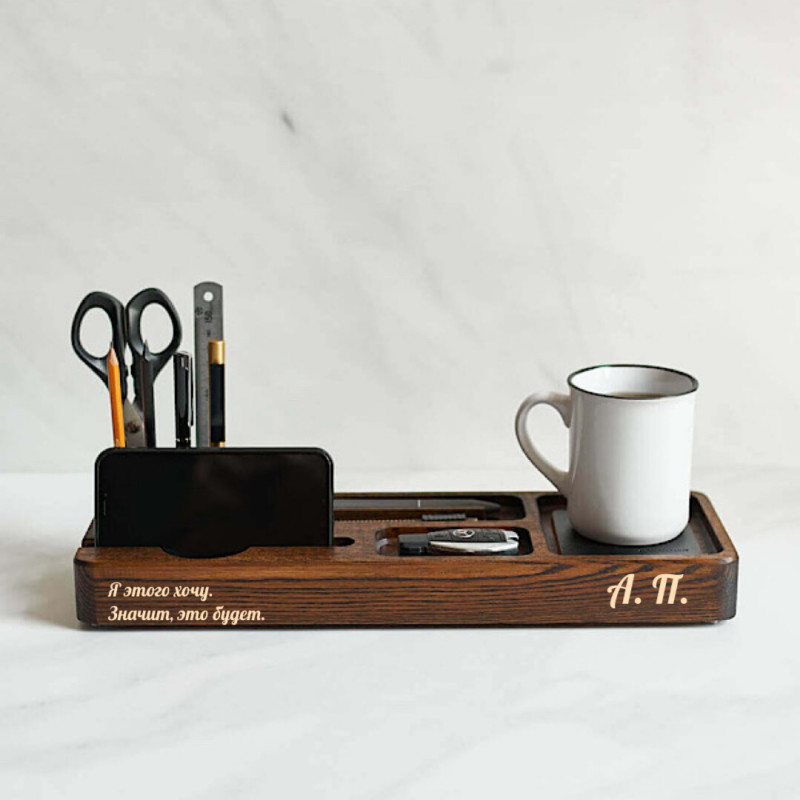 Настольный набор-органайзер с гравировкой "Ворк", коричневый
