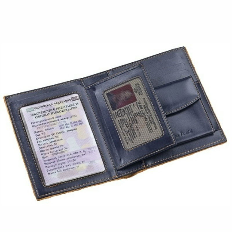 Характеристики > Материал: натуральная кожа > Цвет: синий > Размер: 14х12х2,1 см > Упаковка: чехол, подарочная коробка > Портмоне: отделения для банкнот, техпаспорта, водительского удостоверения, пластиковых карт, карман для монет. Если у Вас остались вопросы о данном товаре, или возникли проблемы при оформлении заказа, Вы всегда можете позвонить нам по телефону +7 495 120 70 45, и наши менеджеры с удовольствием ответят на все вопросы, а также помогут оформить заказ, или примут заказ по телефону. Примечания * Надпись на фотографии товара приведена в качестве примера. При заказе Вы указываете Ваш текст для гравировки. Сделать это можно в специальном поле выше. Вы можете выбрать подходящую фразу из предложенного каталога, или предложить свою. Стоимость гравировки на одной стороне (внутри или снаружи портмоне) включена в стоимость товара, и не зависит от количества символов. Дополнительная гравировка (на каждой последующей стороне портмоне) стоит 350 рублей. ** Нанесение текста на кожу выполняется методом лазерной гравировки. Цвет гравировки всегда зависит от материала. Во время гравировки лазер удаляет тонкий верхний слой кожи, бблагодаря чему появляется надпись, которая не стирается и не тускнеет со временем. Мы не наносим текст при помощи печати краской по поверхности. Наши специалисты в течение долгого времени тщательно отбирали товары, которые подходят для гравировки, что позволяет нам гарантировать качество выполненной работы.