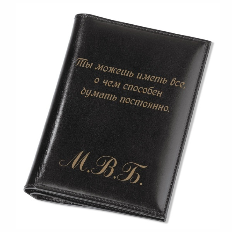 * Надпись на фотографии товара приведена в качестве примера. При заказе Вы указываете Ваш текст для гравировки. Сделать это можно в специальном поле выше. Вы можете выбрать подходящую фразу из предложенного каталога, или предложить свою. Стоимость гравировки на одной стороне (внутри или снаружи портмоне) включена в стоимость товара, и не зависит от количества символов. Дополнительная гравировка (на каждой последующей стороне портмоне) стоит 350 рублей.