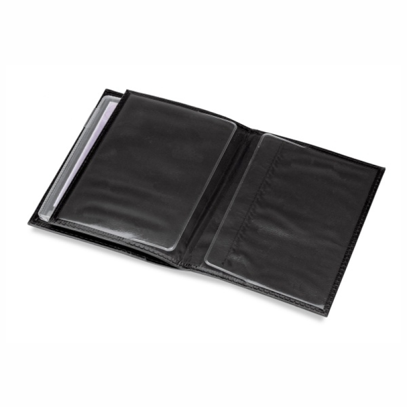 > Портмоне: 6 пластиковых карманов (в том числе для документов водителя, доверенности, страхового полиса), за ними — 5 карманов для пластиковых карт.