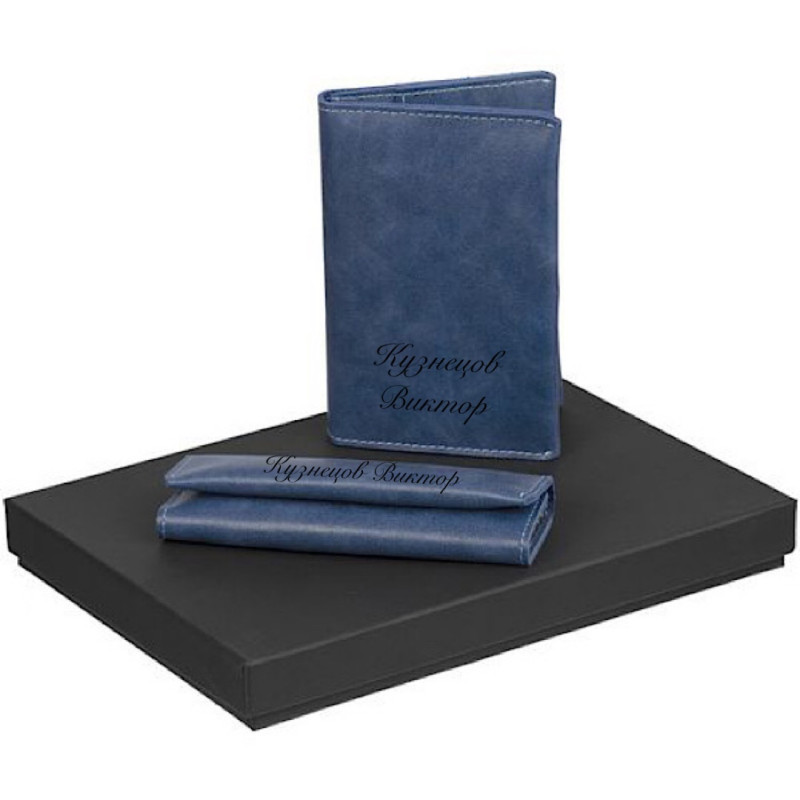 Обложка для паспорта+ключница с гравировкой Passkey из кожи, синий