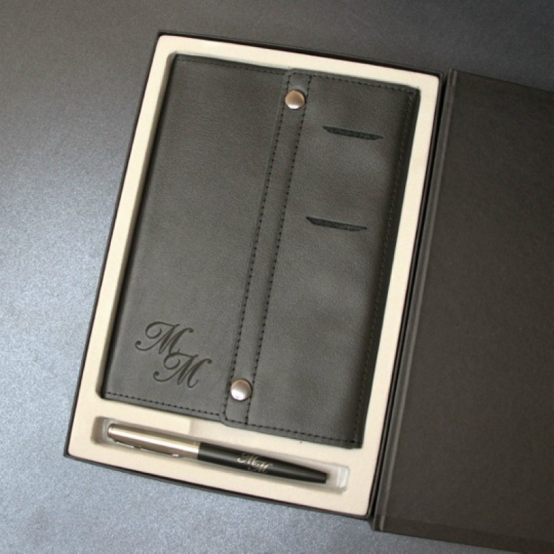 Подарочная коробка для ежедневника и ручки из переплетного картона с гравировкой
