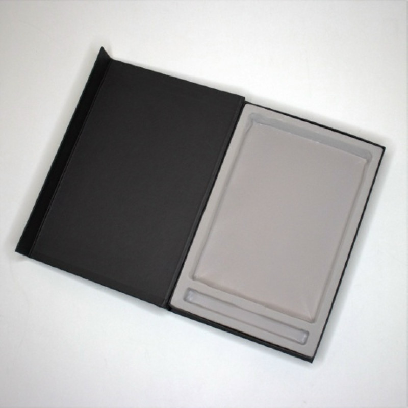 Коробка с клапаном на магните, выполнена из переплетного картона, кашированного бумагой Malmero.