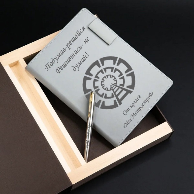 * Уважаемый клиент! На всех подарках, представленных на сайте, мы сделаем индивидуальную гравировку по вашему заказу. В качестве примера мы показали на фото, как это может быть. Вы всегда можете сами создать свой особенный дизайн, подробно описав в окошке выше текст, свое видение расположения текста и пожелания по шрифту (например, хочу строгий печатный или наоборот прописной с вензелем).После того как вы оформите заказ с вами обязательно будет связываться менеджер для уточнения деталей и ваших пожеланий, вы еще раз все проговорите. По вашему заданию наш дизайнер изготовит макет гравировки. Но эта работа занимает время, иногда целый день, поэтому просим не волноваться, а довериться нам. Макет обязательно будет готов, но без вашего утверждения мы не приступим к исполнению. Просим при утверждении макета проверять правильность написания текста и фамилии. Допускается до 2х корректировок макета, поэтому просим задание писать четко и подробно. Также заказ возможно оформить через WhatsApp месседжер, направив всю необходимую информацию и пожелания по одному из указанных номеров. Стоимость гравировки на одной стороне ежедневника и ручке включена в стоимость, и не зависит от количества символов. Каждая дополнительная гравировка стоит 350 рублей. Разработка рисунков и логотипов оплачивается отдельно, стоимость завсисит от сложности.