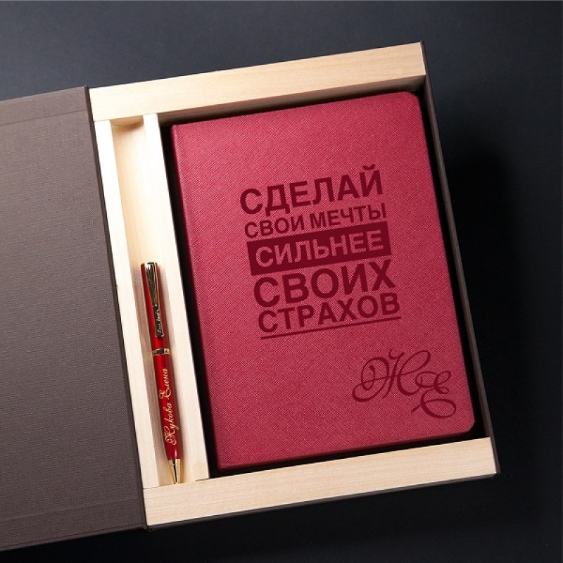 Набор ежедневник и ручка Pierre Cardin с гравировкой в коробке "Glow", цвет красный