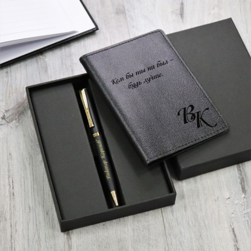 Подарочный набор обложка для паспорта и ручка Pierre Cardin с гравировкой "Монмарт", цвет черный