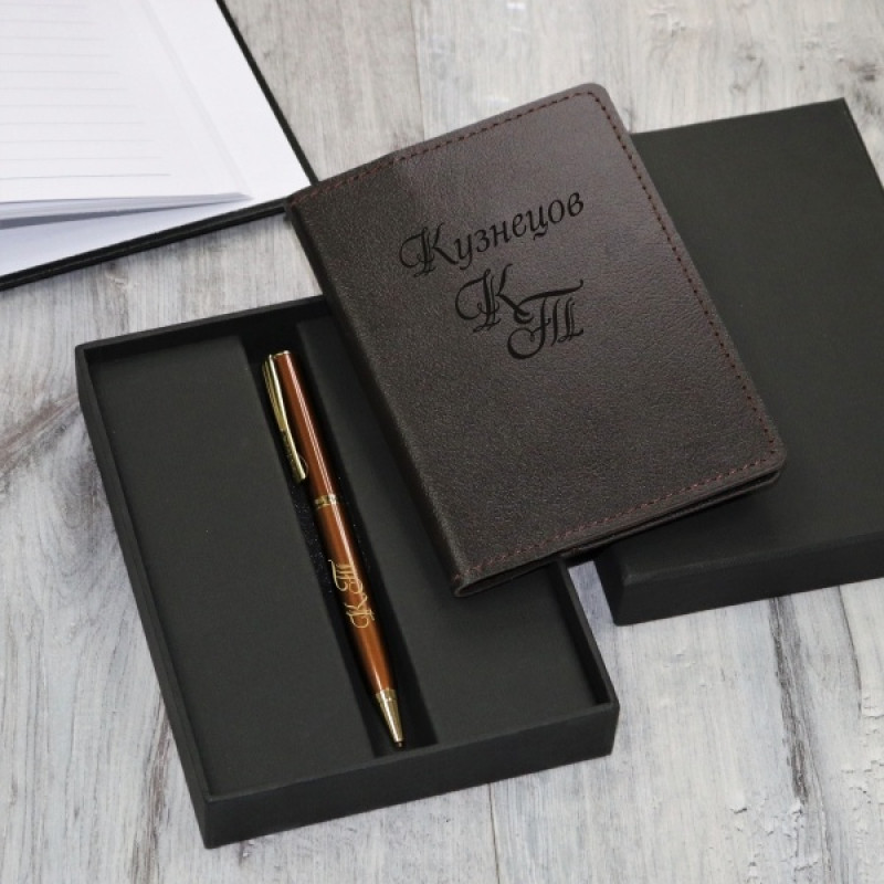 Подарочный набор обложка для паспорта и ручка Pierre Cardin с гравировкой "Монмарт", цвет коричневый