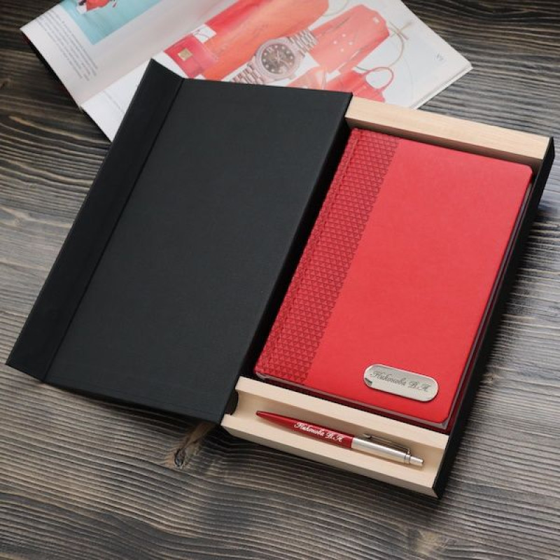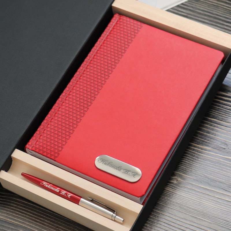 Подарочный набор ежедневник и ручка Parker с гравировкой "Red"