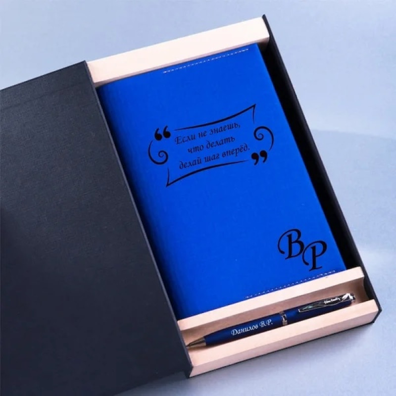 На всех подарках, представленных на сайте, мы сделаем индивидуальную гравировку по вашему заказу. В качестве примера мы показали на фото, как это может быть. После того как вы оформите заказ с вами обязательно свяжется менеджер. По вашему заданию наш дизайнер изготовит макет гравировки. Просим при утверждении макета проверять правильность написания текста и фамилии. Также заказ возможно оформить через WhatsApp месседжер. Многие наши изделия собираются по принципу конструктора. Вы можете заменить в наборе ежедневник или ручку на ваш вкус. А также мы обязательно предложим альтернативу, если какой-то составляющей не окажется в наличии. Стоимость гравировки на одной стороне ежедневника и ручке (только текст) включена в стоимость, и не зависит от количества символов. Каждая дополнительная гравировка стоит 350 рублей. Разработка рисунков и логотипов оплачивается отдельно.