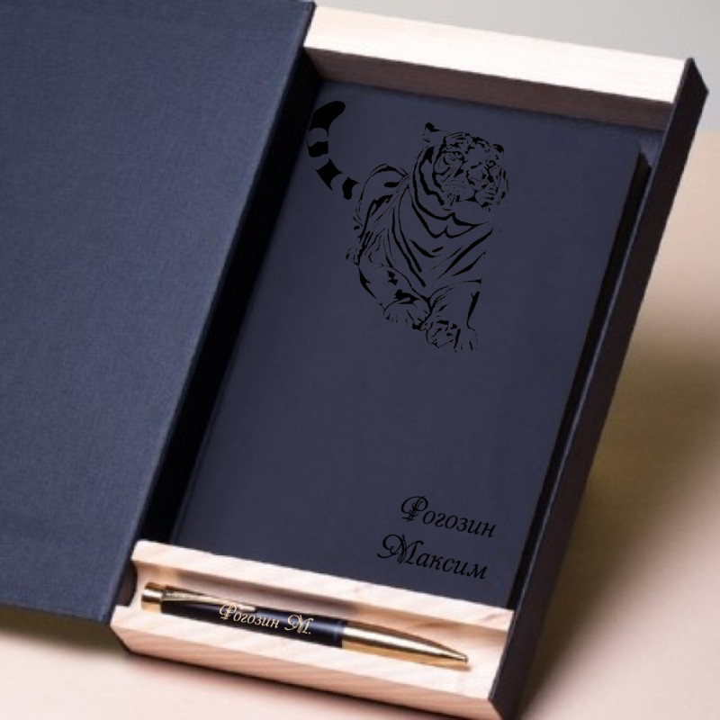 Данный ежедневник можно приобрести отдельно, а также в наборе. Мы сделали подборку наборов с разными ручками брендов Parker или Pierre Cardin. Наборы упакованы в нашу авторскую подарочную коробку из черного матового дизайнерского картона с креплениями на магнитах и с отделением из дерева для ручки.