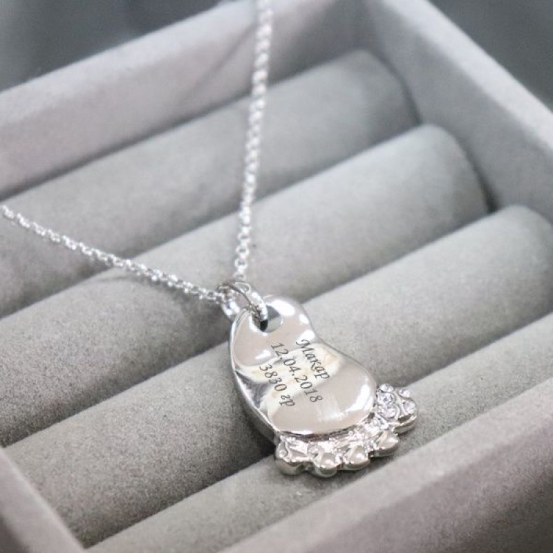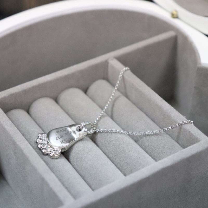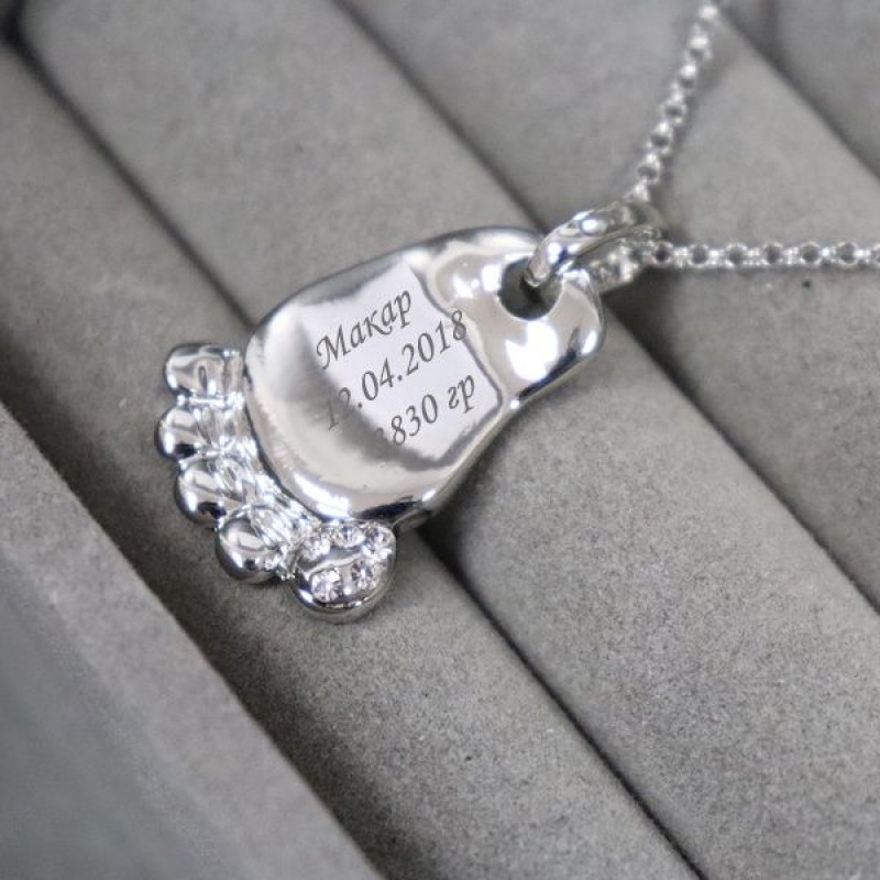 Подвеска След привлекает взгляд своей оригинальностью и необычностью. Украшение выполнено из ювелирной стали, при ношении не темнеет. След – весьма символичный подарок, так как делая такой подарок вы подчеркиваете важность одариваемого в вашей жизни. Украшение настолько универсально, что его берут в подарок как маленьким девочкам, сделав гравировку имени, молодым мамам, сделав гравировку метрики новорожденного, молодым девушкам, написав слова любви. Есть След в золотом цвете. Дополнительно вы можете приобрести подарочную коробку.