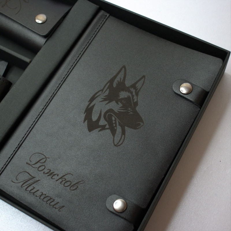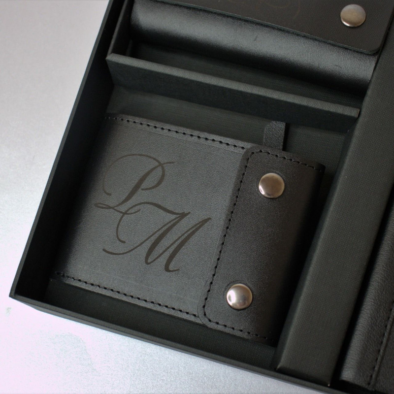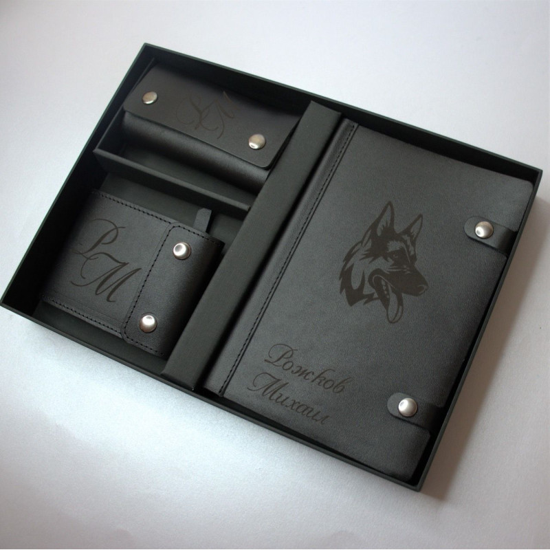 Премиальный подарочный набор - портмоне, ключница и ежедневник из натуральной кожи с персональной гравировкой. Идеальный подарок для руководителя.