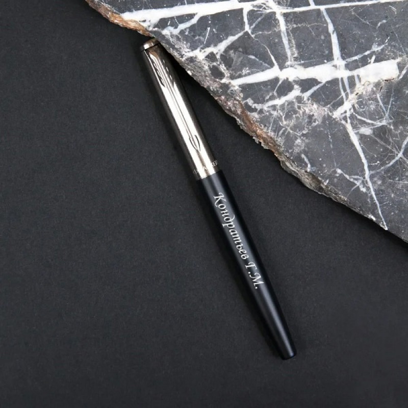 ** Нанесение текста на ручку выполняется методом механической (алмазной) гравировки. Во время гравировки алмазный резец удаляет тонкий верхний слой покрытия, благодаря чему появляется надпись, которая не стирается и не тускнеет со временем. Цвет надписи зависит от того, из какого материала выполнено изделие внутри. Данная ручка выполнена из нержавеющей стали, поэтому гравировка "мерцает" и переливается, а цвет гравировки - серебристый. Мы не наносим текст при помощи печати краской по поверхности.