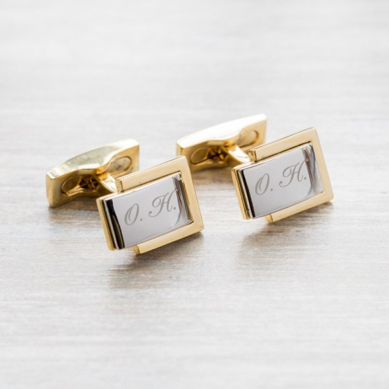 Запонки дизайнерские с гравировкой "Премиум", цвет серебро/золото