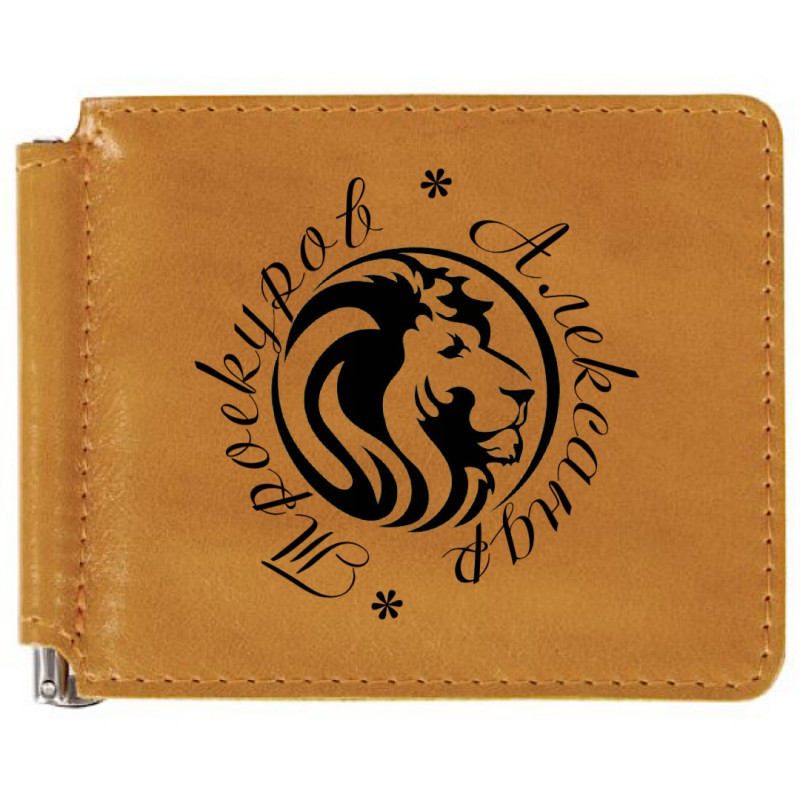 Зажим для купюр с гравировкой Dubai из кожи, цвет горчичный