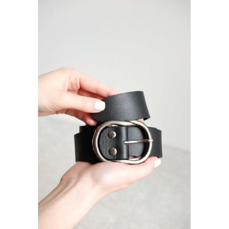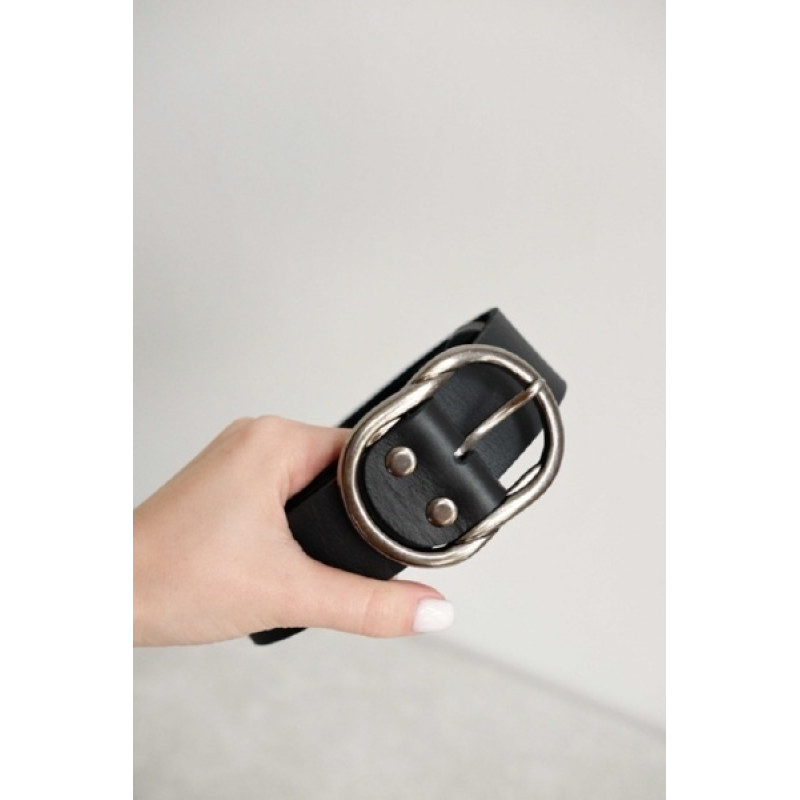 Женский ремень для джинсов с пряжкой необычной формы. Собран вручную. Цельная натуральная кожа толщиной около 4 мм. Универсальная длина 110 см. Характеристики: Тип кожи: КРС, Россия Цвет: черный Пряжка цвет: тёмный никель Материал: натуральная кожа Длина, см: 110 Ширина, см: 3,5 Если у Вас остались вопросы о данном товаре, или возникли проблемы при оформлении заказа, Вы всегда можете позвонить нам по телефону +7 495 120 70 45, и наши менеджеры с удовольствием ответят на все вопросы, а также помогут оформить заказ, или примут заказ по телефону. Примечания * Надпись на фотографии ремня приведена в качестве примера. При заказе Вы указываете Ваш текст для гравировки. Сделать это можно в специальных полях выше. Вы можете выбрать подходящую фразу из предложенного каталога, или предложить свою. Стоимость гравировки включена в стоимость товара, и не зависит от количества символов. Дополнительная гравировка на коробке стоит 350 рублей. ** Нанесение текста на кожу выполняется методом лазерной гравировки. Цвет гравировки всегда зависит от материала. Кожа – однородный материал, цвет кожи внутри совпадает с цветом кожи снаружи. Во время гравировки лазер удаляет тонкий верхний слой кожи, благодаря чему на изделии появляется надпись одного цвета с изделием, которая не стирается со временем. Мы не наносим ваш текст при помощи печати краской или золотистого тиснения.